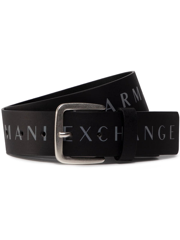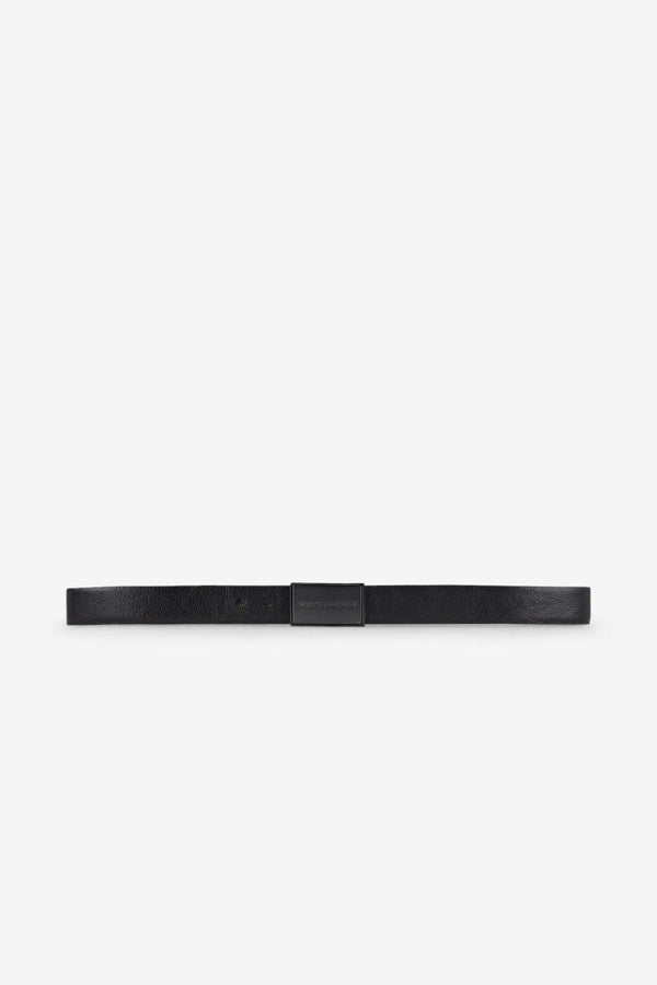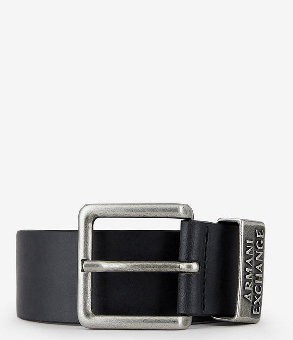 ARMANI EXCHANGE BLACK LEATHER BELT WITH RECTANGULAR BUCKLE