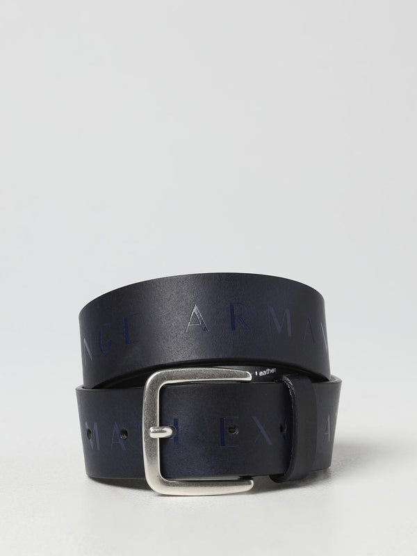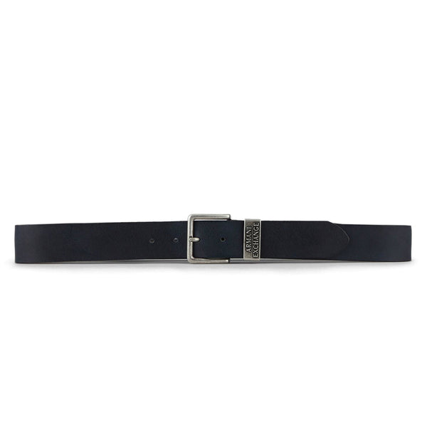 Armani Exchange NAVY LEATHER BELT WITH RECTANGULAR BUCKLE