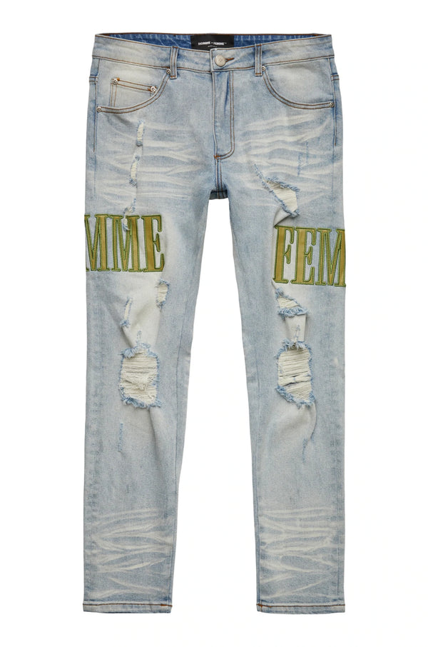 Save $35.00HOMME FEMME Letterman Denim Blue with Olive Green (HFSM202161)