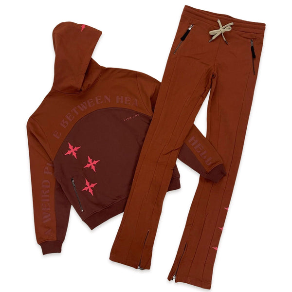 Rawyalty Kids 001 RAW Brown/Cream 3D Embroidery Hoodie And Jogger Set