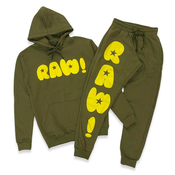 Rawyalty Men RAW Star Yellow Puff Hoodie And Jogger Set