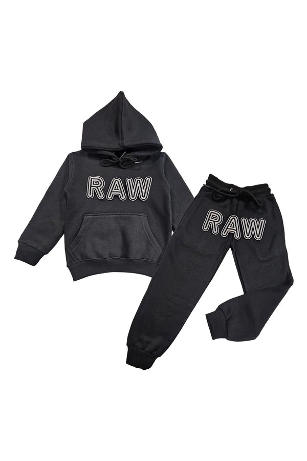 Rawyalty Kids 001 RAW Black/White 3D Embroidery Hoodie And Jogger Set