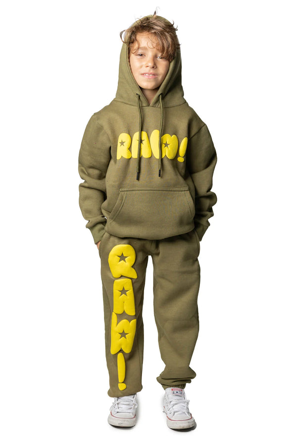 RAW Star Yellow Puff Hoodie And Jogger Kids Set