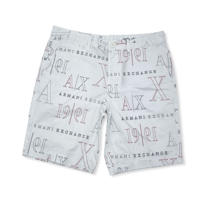 ARMANI EXCHANGE STRETCH COTTON TWILL SHORTS (WHITE/RED)