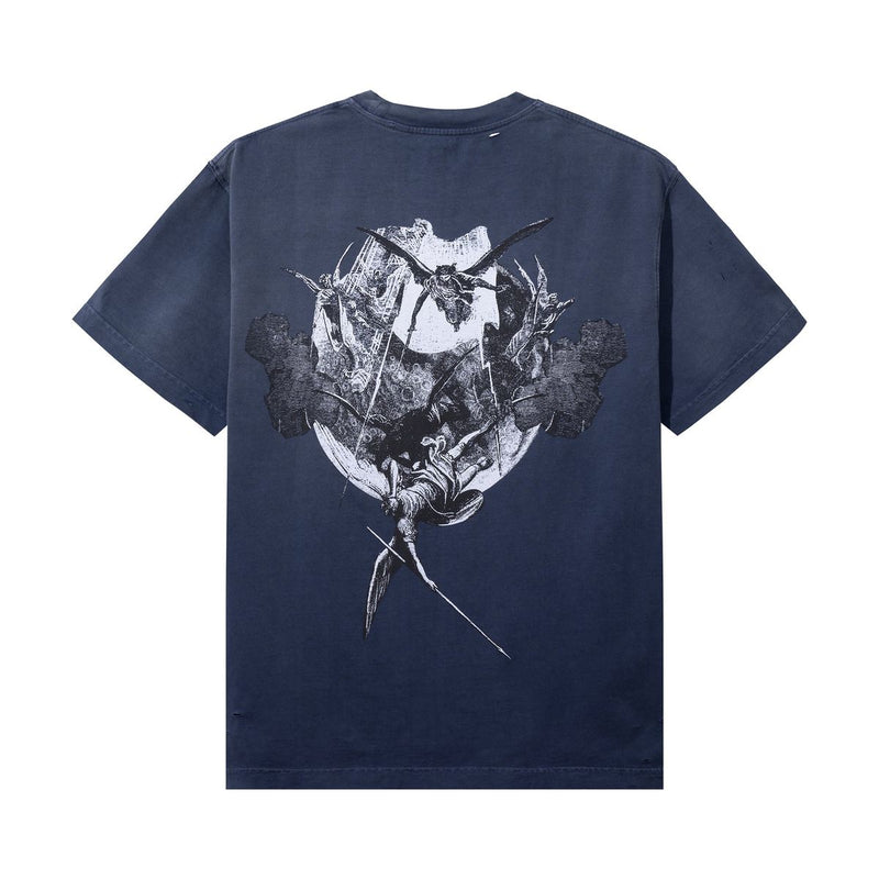REVENGE KOSUKE KAWAMURA GLITCH ARCH LOGO TREATED TEE NAVY