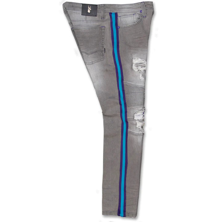 Makobi USA M1986 OZARKS SHREDDED JEANS W/ SIDE TAPES - GRAY WASH