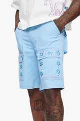 Bold, floral, and built for summer. The “Dense” Shorts feature oversized utility pockets fully embellished with shimmering crystal flowers and rhinestone framing. Made with breathable cotton and designed to shine—whether solo or as part of the full set.